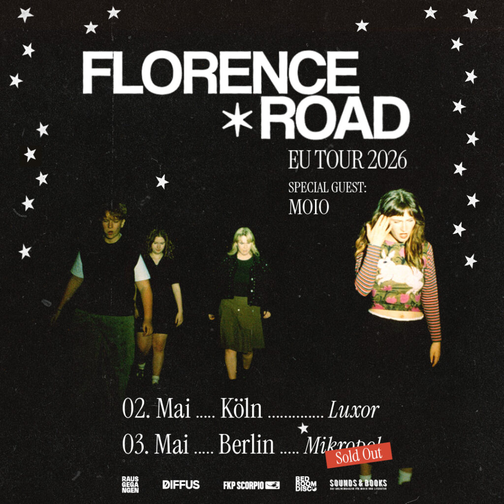 Als das Projekt, benannt nach einer Küstenstraße in ihrer Heimat Wicklow, 2022 einen Musikwettbewerb und somit die Finanzierung einer Single inklusive eines Musikvideos gewann, zeigte sich das Schicksal gnädig: Die harte Arbeit der Vier zahlte sich in Form eines Platten- und Verlag-Vertrags mit Warner Music aus. Und schon flogen Lily Aron (Gesang), Emma Brandon (Gitarre), Ailbhe Barry (Bass) und Hannah Kelly (Schlagzeug) nach Los Angeles, um ihr Debüt-Mixtape aufzunehmen. Dan Nigro, der mit Florence Road den anfangs erwähnten Song „Caterpillar“ produzierte, hatte bereits mit Olivia Rodrigo sowie Chappell Roan zusammengearbeitet; Mitski-Produzent Dan Wilson wiederum wirkte an dem EP-Track „Hand Me Downs“ mit. Die sechs Songs der „Fall Back“-EP erfuhren Lob von Medien wie dem NME sowie Rolling Stone, und ließen Vergleiche mit Avril Lavigne, Phoebe Bridgers und Paramore zu. Zudem spielten die Irinnen Support für Olivia Rodrigo, begleiten diesen Herbst Wolf Alice durch Europa und können bereits eine Nominierung für den Music Moves Europe (MME) Award 2026 vorweisen. Im Frühjahr 2026 geht es für Florence Road zunächst mit The Last Dinner Party auf Nordamerika-Tour, bevor sie im Mai wieder hierzulande spielen. Für zwei Konzerte macht das Quartett in Köln und Berlin Halt.